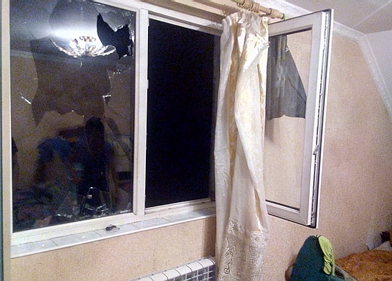 Вони повибивали шибки на трьох вікнах та на вхідних дверях будинку, а дочка його власниці та її зять отримали легкі тілесні ушкодження.