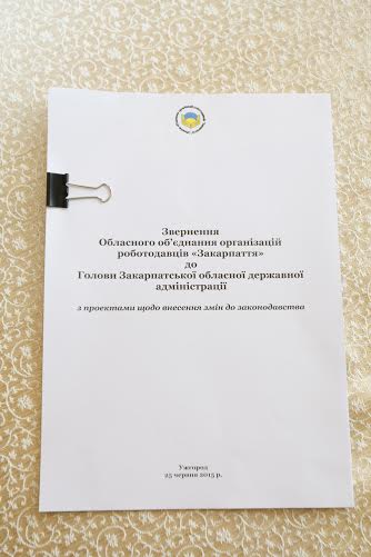 Для затвердження на зустрічі представники бізнесу і ОДА підготували спільний документ, який передбачає кроки з розвитку Закарпаття як регіону з кращими умовами економічного середовища. Завдання у спільній платформі окреслені якнайамбіційніші - стати лідером економічних перетворень в Україні. Для того, аби цього досягти, пропонується об'єднати зусилля влади та бізнесу, й відродити найкращі практики, які свого часу посприяли розвитку виробництв на Закарпатті, та запровадити нові. Як от – створити правове поле, в якому працюють реанімовані та доопрацьовані закони про СЕЗ "Закарпаття", "Про спеціальний режим інвестиційної діяльності в Закарпатській області", "Про інвестиційні парки".