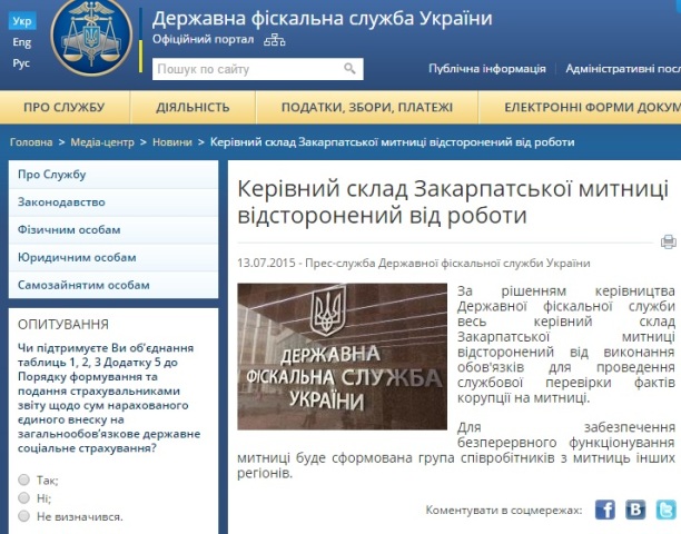 Більше того, під час представлення нового голови Закарпатської ОДА 15 липня особисто Президент Петро Порошенко в Ужгороді анонсував масові чистки та відставки на митниці та у прикордонній службі.