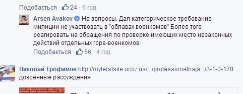 Такою була відповідь міністра внутрішніх справ Арсена Авакова на одне із питань у Фейсбуку. "Дав категоричну вимогу міліції не брати участь у "облавах військкомів, – повідомив глава МВС. – Більше того, реагувати на звернення щодо перевірки незаконних дій окремих горе-військкомів, які мають місце".