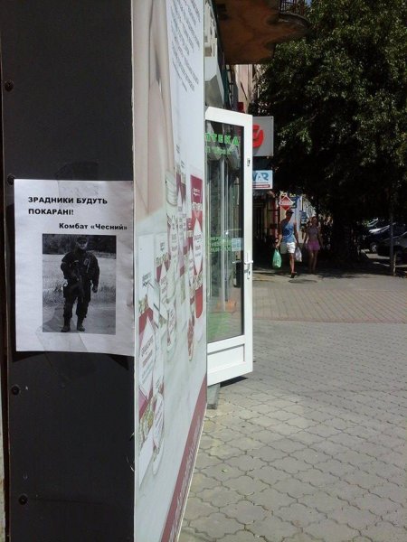 08.08.2015 в Ужгороді помітили листівки із посланням від Комбата Чесного для всіх зрадників, корупціонерів та злочинців у погонах.