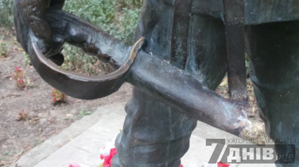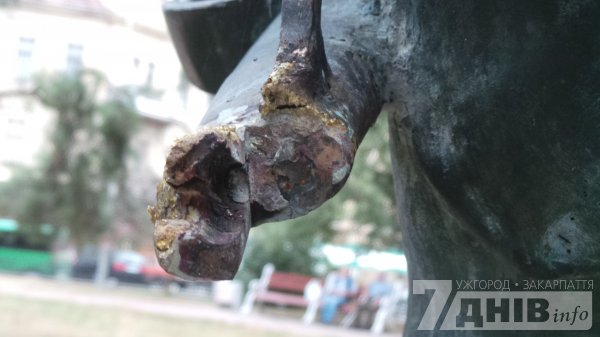 У центрі Ужгорода знову «приклалися» вандали – у ніч із вівторка на середу (18-19 серпня) брутально зламали шаблю, яку тримає увічнений на однойменній площі угорський поет Шандор Петефі, пише 7 днів.