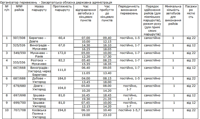 Закарпатська ОДА оголосила конкурс з перевезення пасажирів на міжміських та приміських автобусних маршрутах загального користування, що не виходять за межі території області (внутрішньо обласні маршрути).