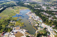 Фантастичні краєвиди села Солотвино: солені озера, бази відпочинку Солотвино, алергологічна лікарня з висоти польоту від Туристично-інформаційного центру “Турінформ Закарпаття”.
