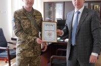 У рамках прийнятої 10 березня на сесії міськради Програми матеріально-технічного забезпечення військових частин, т.в.о. начальника зонального відділення військової служби правопорядку Максим Кравець передав подяку міському голові Ужгорода Богдану Андріїву за допомогу військовим.